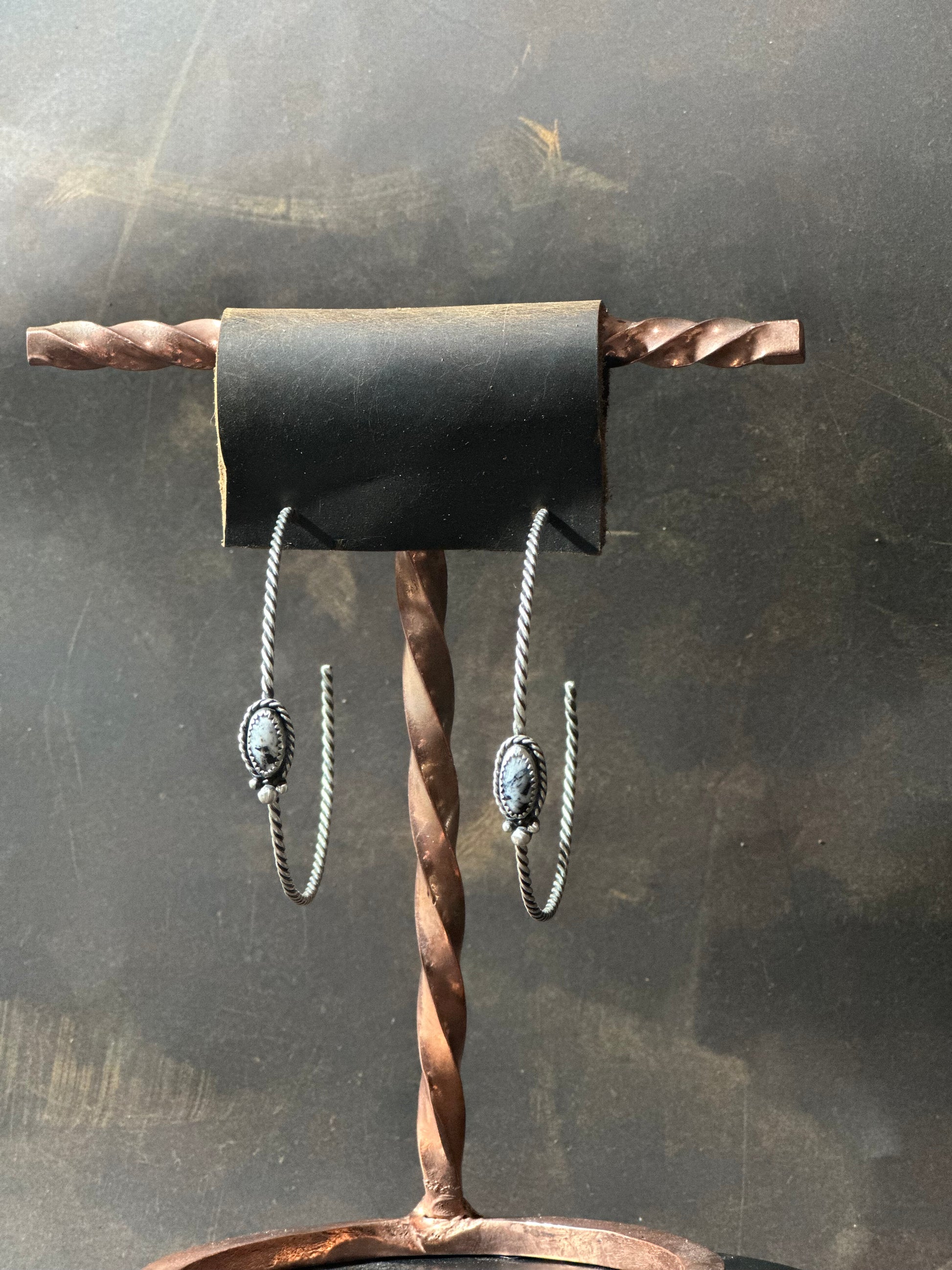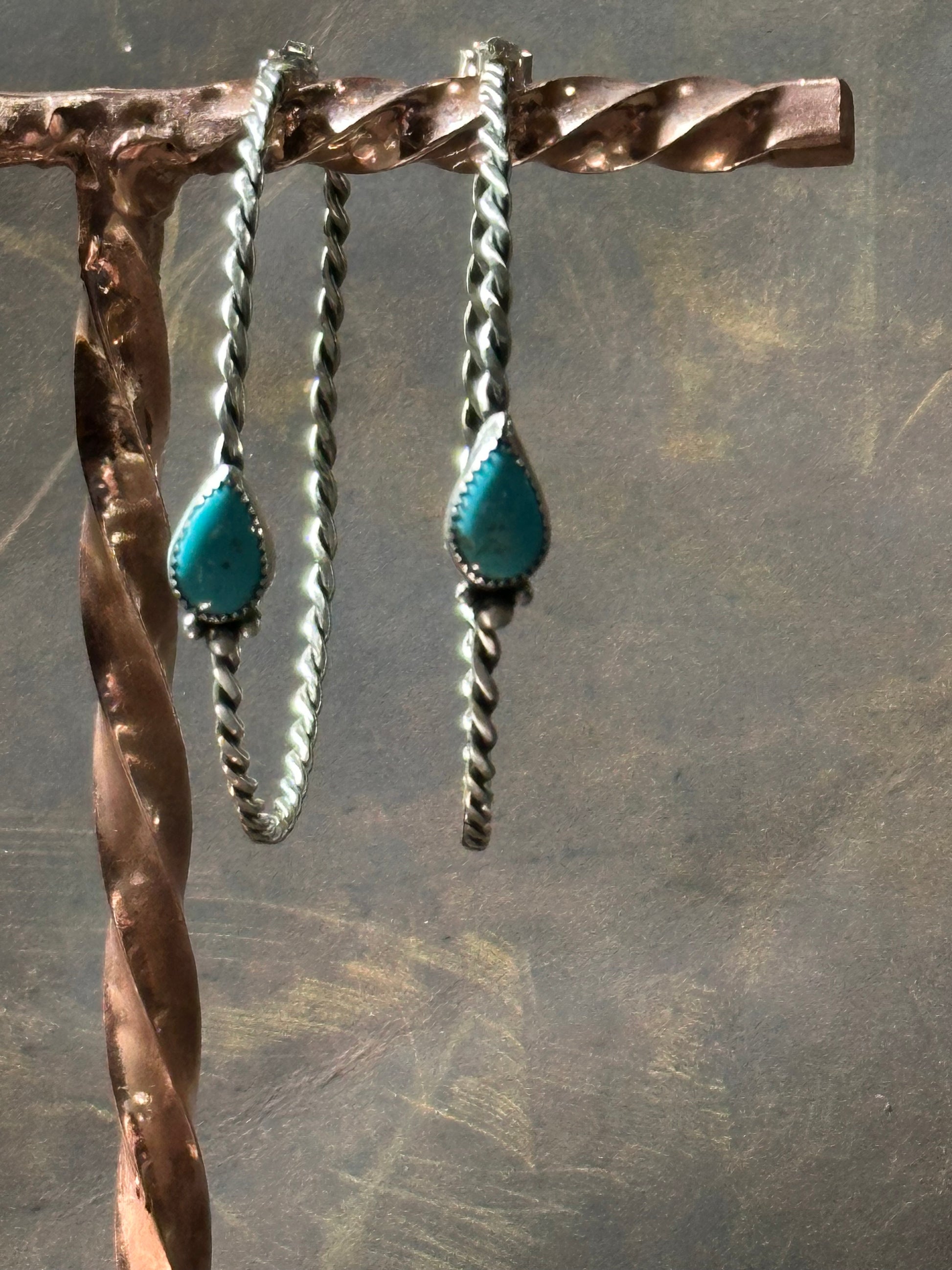 Sterling Silver Rope design. Teardrops in Turquoise shaped stone 2.5" hoop earrings. Made to order with choice of stone available. Western Jewelry at its finest.